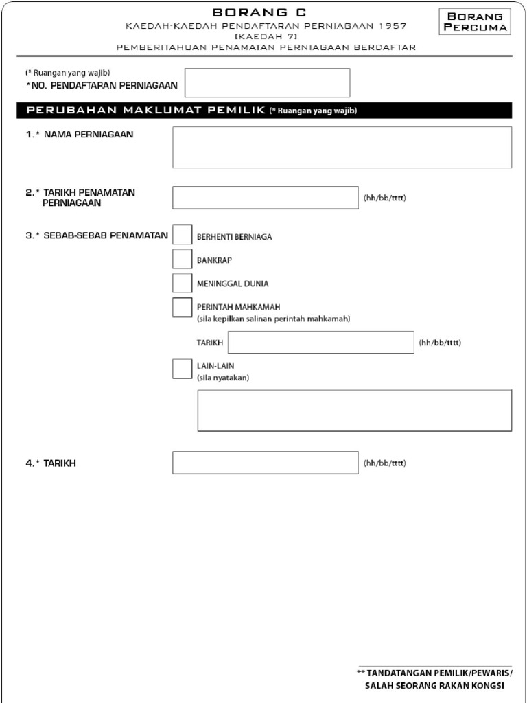 KOS PENDAFTARAN SYARIKAT ENTERPRISE SSM. Kemudian lengkapkan Borang Pendaftaran Perniagaan Baru Borang A beserta dokumen seperti berikut. Perniagaan milikan tunggal dan perkongsian boleh didaftarkan dan dimulakan dalam tempoh yang pendek dan agak mudah.